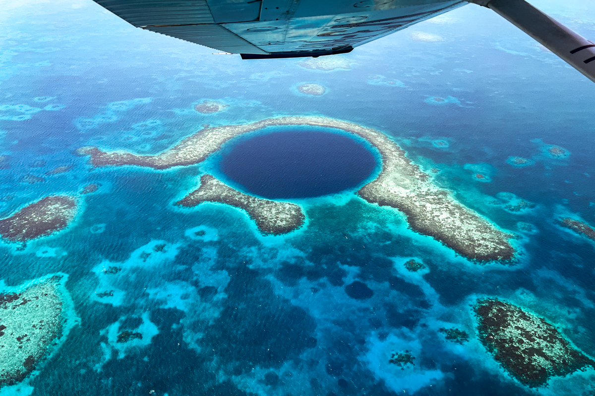 Scenic flights over the Blue Hole are available every day of the week in Belize, departing from either Belize City Municipal, Caye Caulker, or San Pedro. They’re currently offered by three main companies: Tropic Air, Maya Island Air, or Astrum Helicopters.